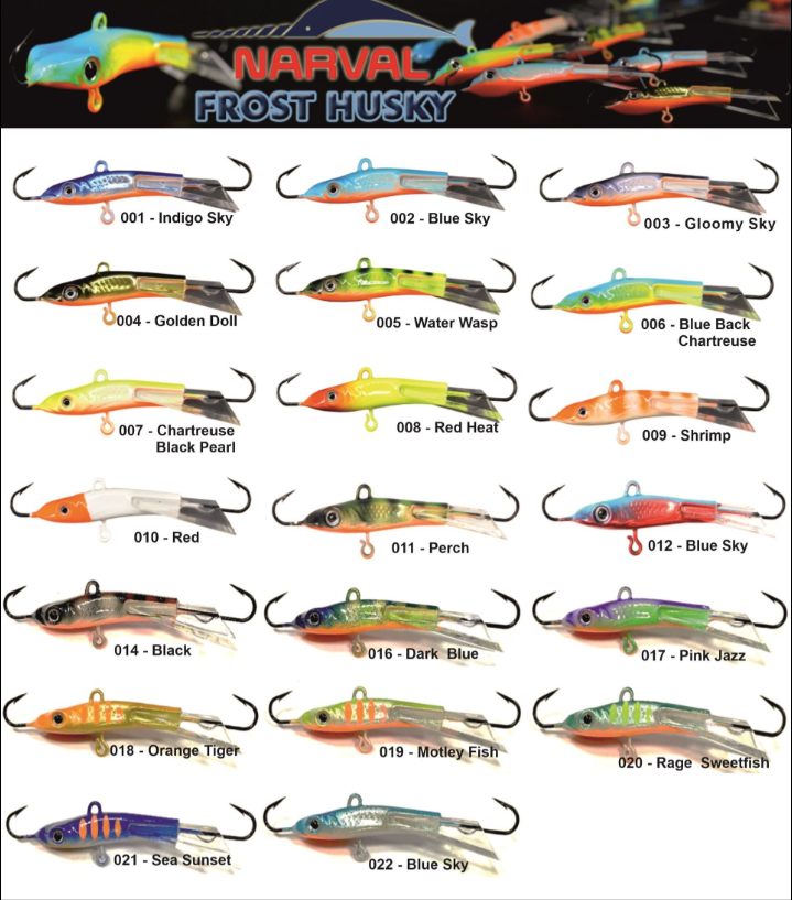Narval Frost Husky tasakaaluliik üllatab oma ainulaadse ja ebatavalise geomeetriaga. Suur pea mahukate ja realistlike silmadega annab landile lisaraskust, samas kui lame kõht koos suhteliselt suure plastsabaga võimaldab tasakaaluliibul veekihis sujuvalt libiseda, järgides õiget "kaheksa" trajektoori ja kaldudes vertikaalist kaugele, meelitades kiskjaid kaugemale. Paljude jaoks on see tõeline avastus!