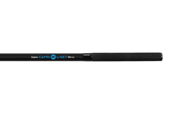 Delphin CAPRI rod series has already shown that a new series of high quality products at very reasonable price comes to our market. Modern landing net Delphin CARPI is perfect equipment for every modern sport angler. It is very light, but strong and perfectly ergonomically made in an elegant black colour. Landing net´s arms have the length of 85cm/100cm and are fitted in a strong metal connector. The net has the depth of 75cm so even a very big fish fits in perfectly, its meshes are 15x7mm big. When designing this landing net, our first priority was its comfortable usage. Both handles are covered with a rubber material in the length of 15cm. Massive spinous connector connects these parts and the whole length is 180cm, including its head it is app.260cm. Its weight is only 840g.