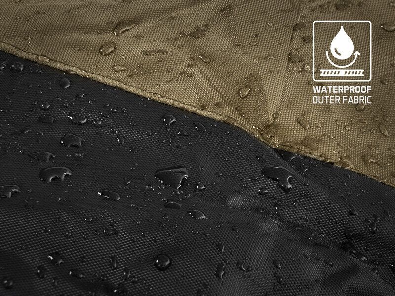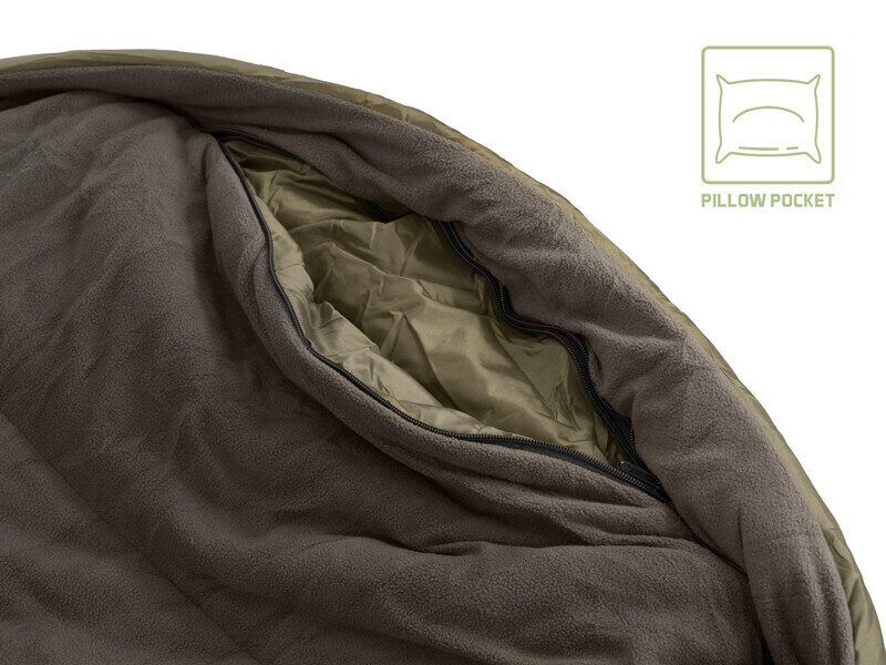 Visi iekšējie slāņi ir izgatavoti no mīkstas brūnas flīsa, kas ir patīkama pieskārienam un īpaši silta, tāpēc jutīsieties ērti pat ekstremālā aukstumā. Galvenais rāvējslēdzējs abās pusēs ir liels, izturīgs un neiesprūst, tāpēc, ja jums ir copi, varat vienkārši novilkt virsējo slāni un steigties pakaļ zivij. Rāvējslēdzēju otrā pusē var nostiprināt ar plastmasas drošības sprādzi. Starp katru slāni ir papildu smalkāki rāvējslēdzēji, kas ļauj izmantot jebkuru no slāņiem atkarībā no āra apstākļiem un jūsu personīgajām vēlmēm. Visi rāvējslēdzēji ir pārklāti ar ūdensnecaurlaidīgu auduma sloksni, kas tos pasargā no lietus. Galvas zonā ir kabata, kas piemērota jebkura maza spilvena ievietošanai un nostiprināšanai.