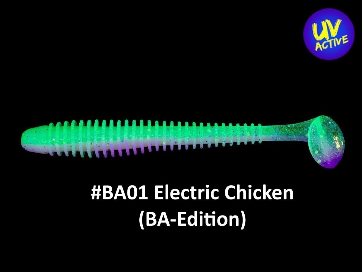 Ümar, ribiline keha koos sabaga lükkab palju vett ja paneb landi küljelt küljele kiikuma. See suure amplituudiga vibratsioon meelitab kiiresti ümbritsevad kalad ligi ja kutsub esile rünnaku. 2-tolline suurus on universaalne - ideaalne ahvena püüdmiseks, kuid kahtlemata haaravad selle ka koha või haug.