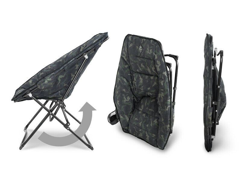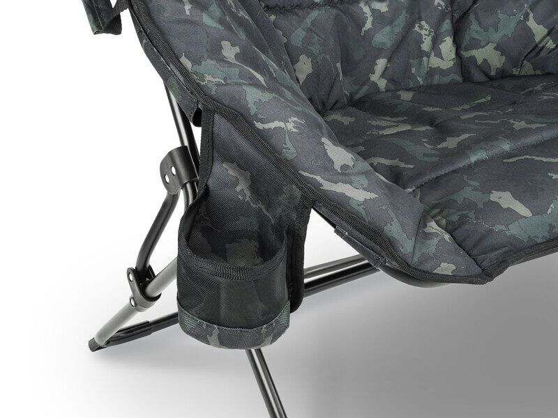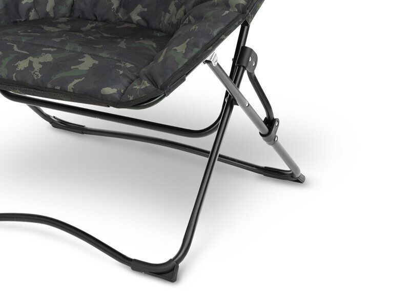 Papildu komfortu sniedz mīksts polsterējums gan sēdeklī, gan visapkārt atzveltnei. Krēsls ir pārklāts ar izturīgu 600D audumu, kas apdrukāts ar patentēto BANX kamuflāžu.