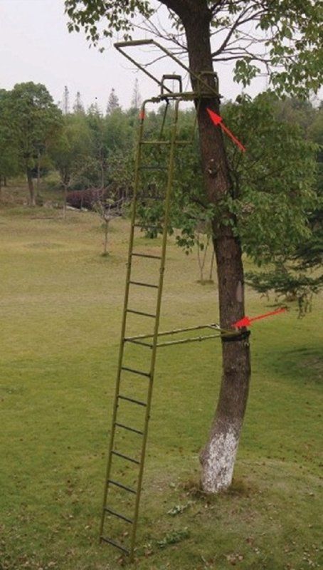 Salokāma medību trepe ar sēdekli. 5m augsta, saliekama 3 dažādiem augstumiem. Iztur 135kg svaru.