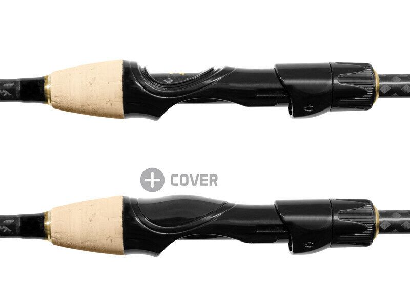 In this case, XCS means EXCLUSIVE. It also stands for exclusive development technologies used when it comes to 40T XCS blank. This rod is therefore fast, sturdy, lightweight, and slim. It has high quality golden guides Seaguide that go very well with the black matte design. The reel seat is rather unusual, but it fits very well in the palm of your hand. Plus, there is a removable cover for a direct contact with the blank. The whole handle is wrapped in carbon, creating a nice cross pattern and increasing the strength of this part. PURE CORK material above the reel seat and at the butt adds another great visual feature.