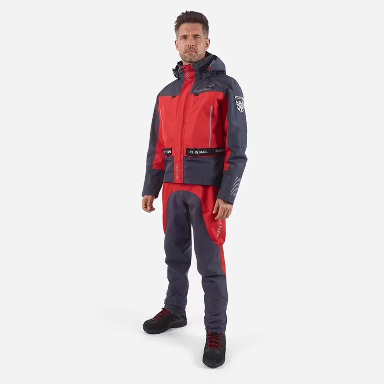 The Mudway jacket is equipped with reflective elements for enhanced visibility in low-light conditions. It includes additional D-rings for attaching a quad bike tether and an integrated belt made of sturdy rubber webbing for waist adjustment, with a wide belt loop on the back. All seams and zippers are hermetically sealed, ensuring complete waterproof protection.