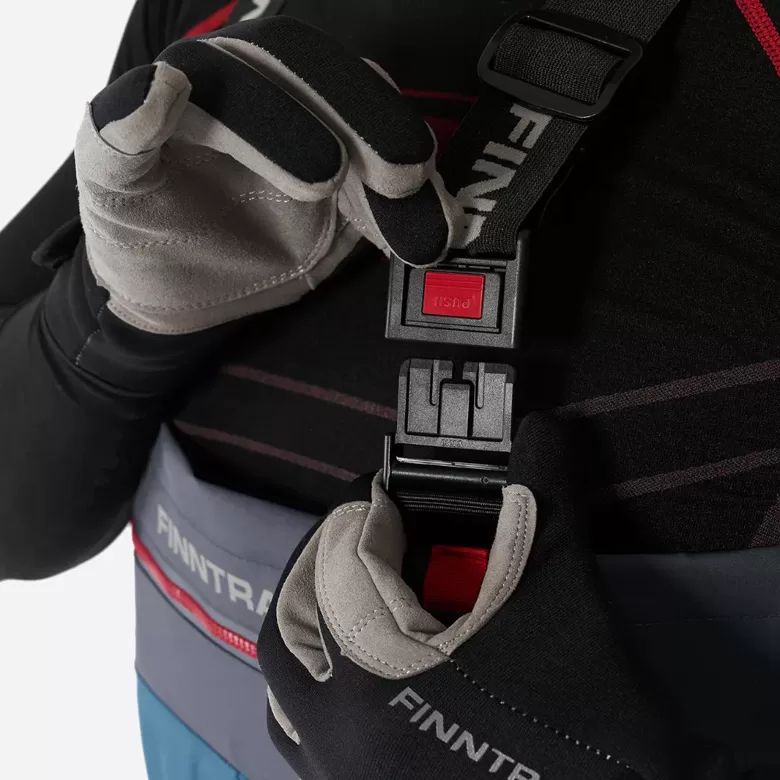 - Elastīgas lences un josta ar FINNTRAIL logotipu, kas ļauj ātri pielāgot piegulšanu.